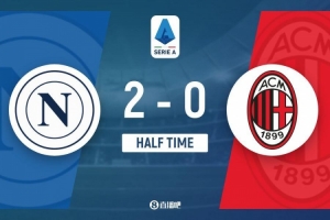 上半场比赛结束,那不勒斯主场暂时2-0领先AC米兰。