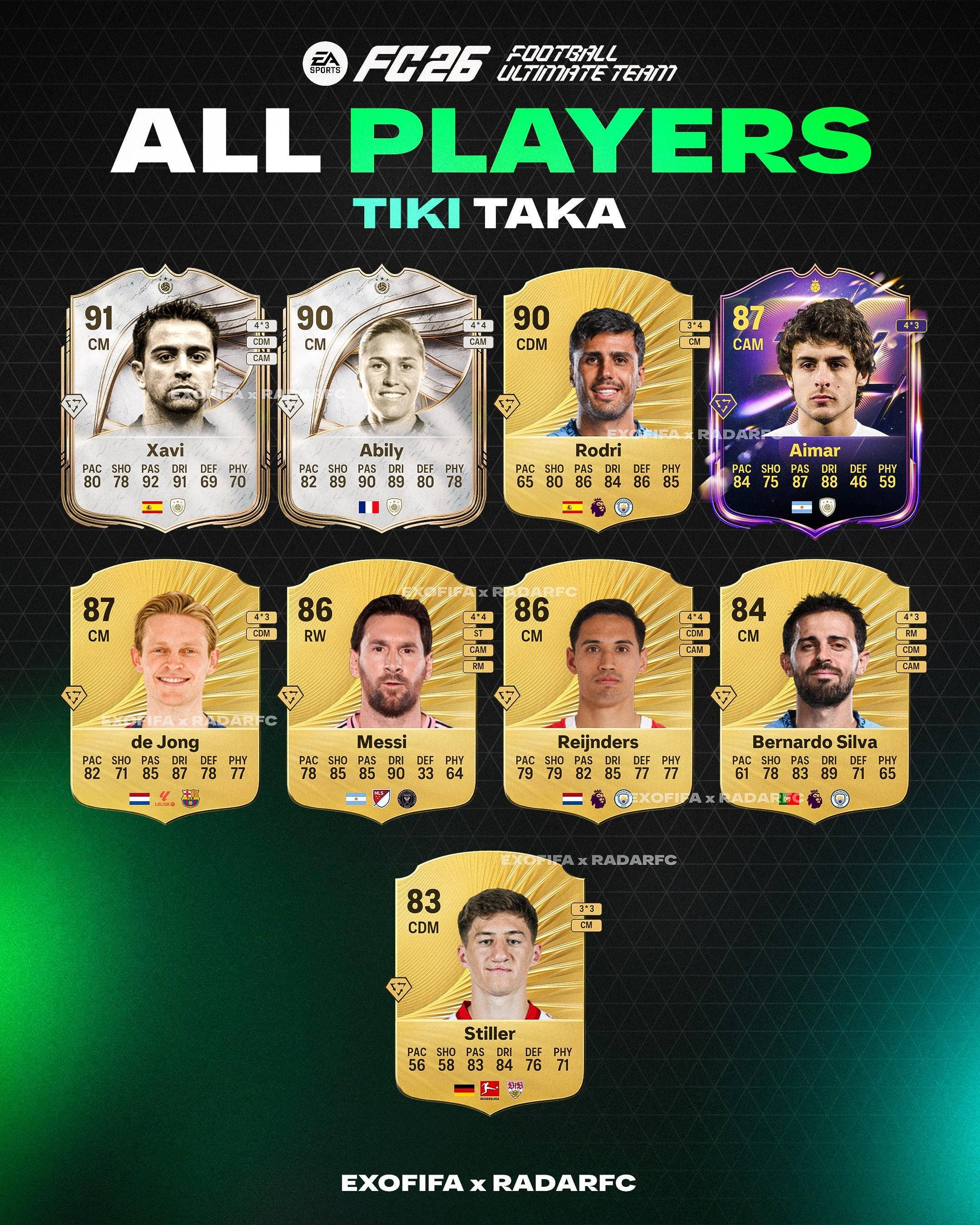 《FC26》金TikiTaka球员已经被曝光,其中,罗德里、德容、梅西、B席、赖因德斯在列。